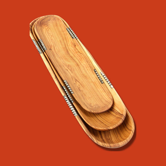 Wild Olive Wood Baguette Trays with Bone Inlay - Set of 3