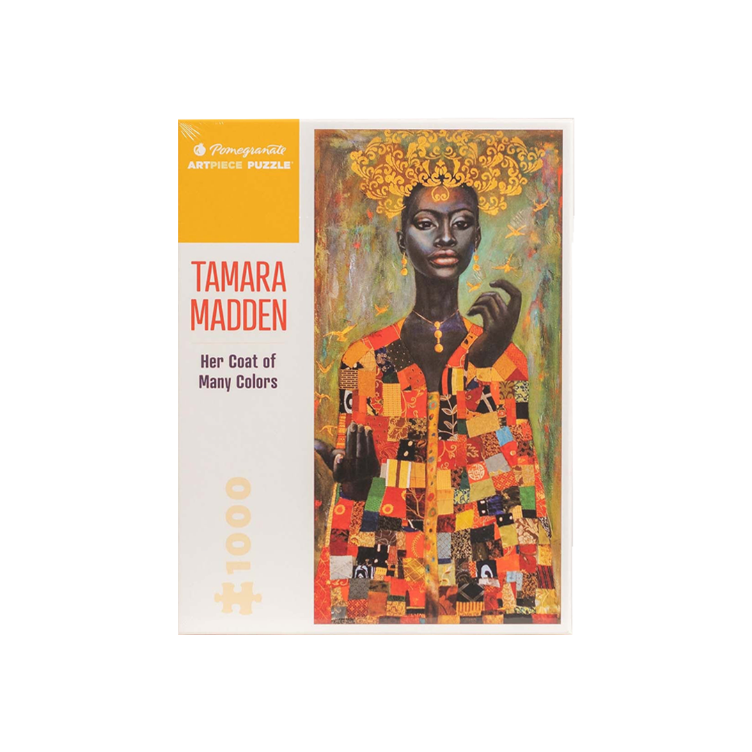Unleash your inner artist with the Her Coat of Many Colors Puzzle by Tamara Madden. This 1000 piece puzzle is designed to challenge and delight with its vibrant colors and intricate design. Perfect for rainy days and cozy evenings in, it's a must-have for any puzzle lover. Finished puzzle measures 16 x 32 in.